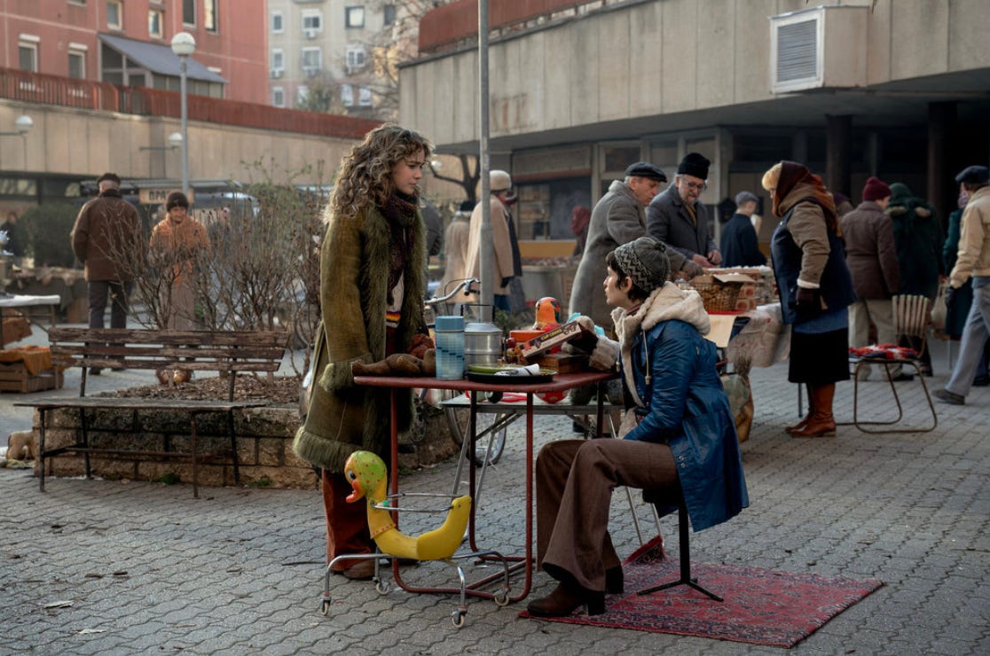 Twila’s chunky, fur-trimmed statement coats protect her as she navigates life: first as a rebellious, against-the-grain embassy wife, then as a covert operative picking up drops at a men-only bathhouse in patriarchal ’70s Russia.