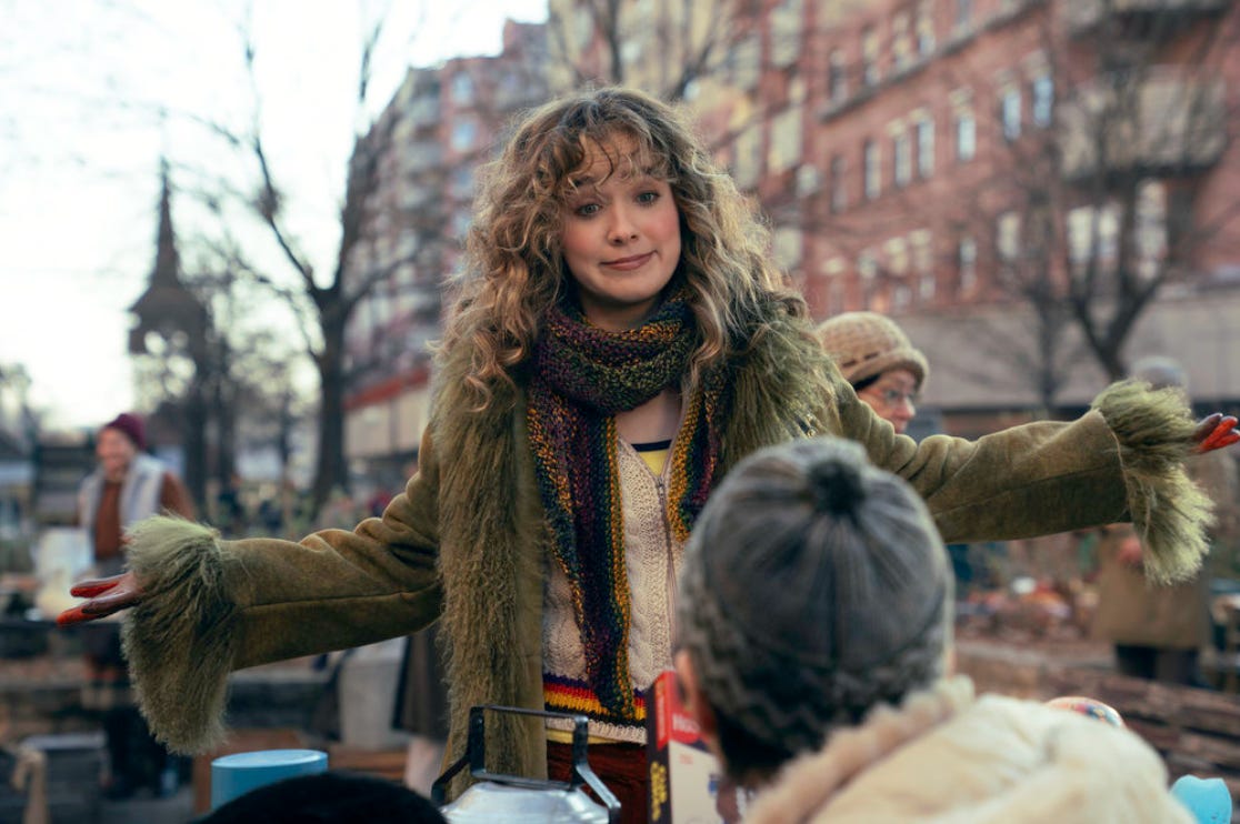 “I research so obsessively,” says Magoutas, about shopping “mindfully and intuitively,” as if the character would. “I never was like, ‘Oh, I want a green shag-suede trench.’ I was just shopping, and the Twila part of my brain saw that coat and was like, ‘That’s Twila.’”